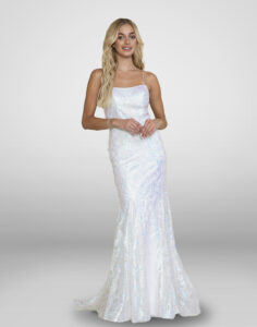 Vestido largo con lentejuela, color dorado tirantes delgados.