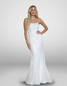 Vestido largo con lentejuela, color dorado tirantes delgados.