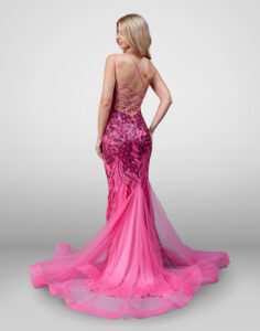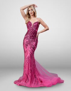 Vestido de fiesta largo con escote en V y lentejuelas bordadas y falda de tul