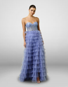 Vestido largo de tul escalonado para mujer, vestido de baile con volantes y tirantes delgados, vestido de fiesta formal de noche.