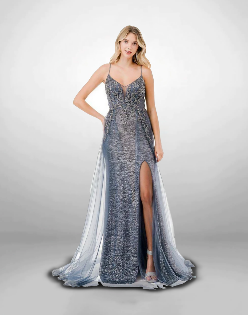 Vestido de largo color azul.