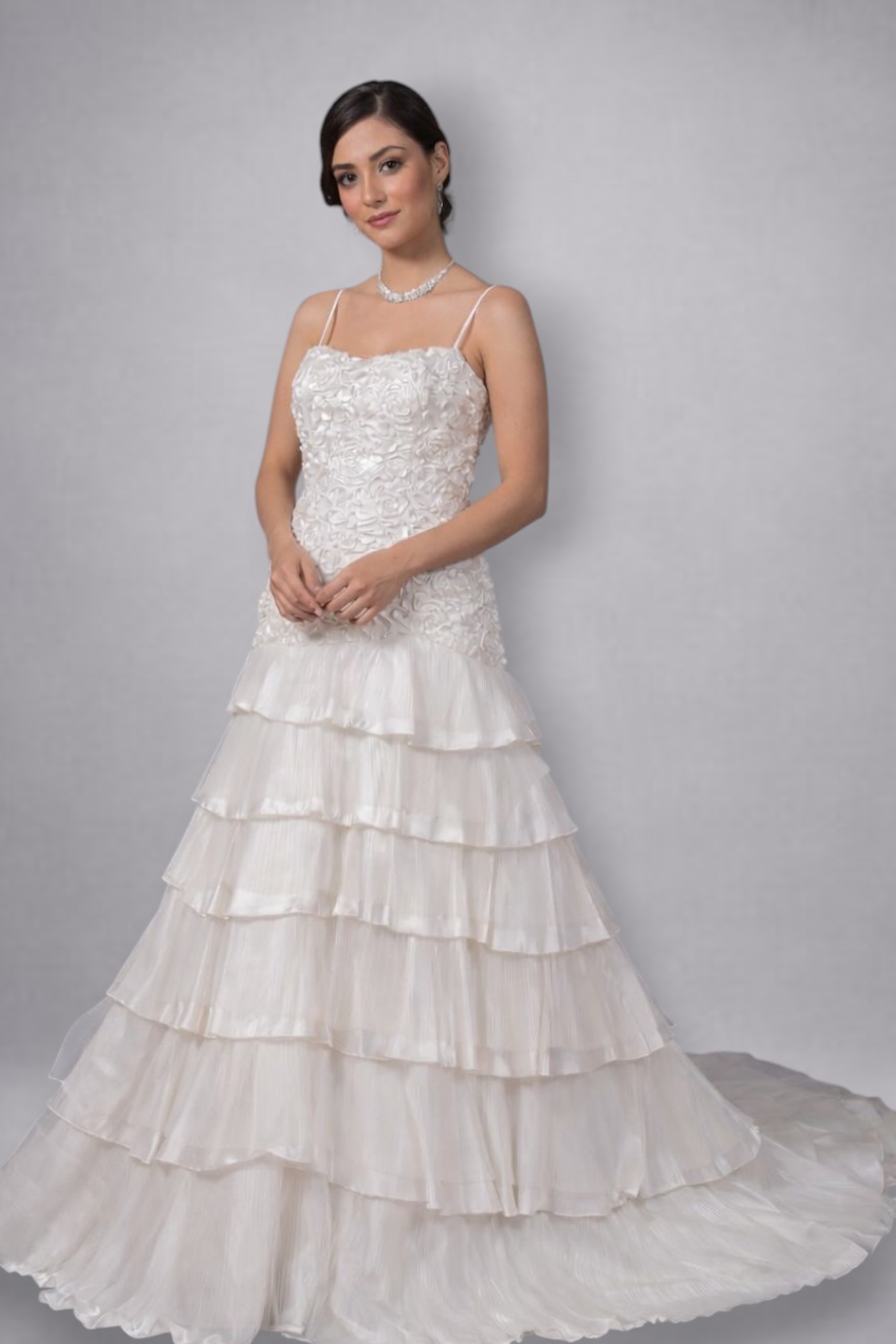 Vestido de de novia cola de sierna, en tela de encaje de hermosa calidad.