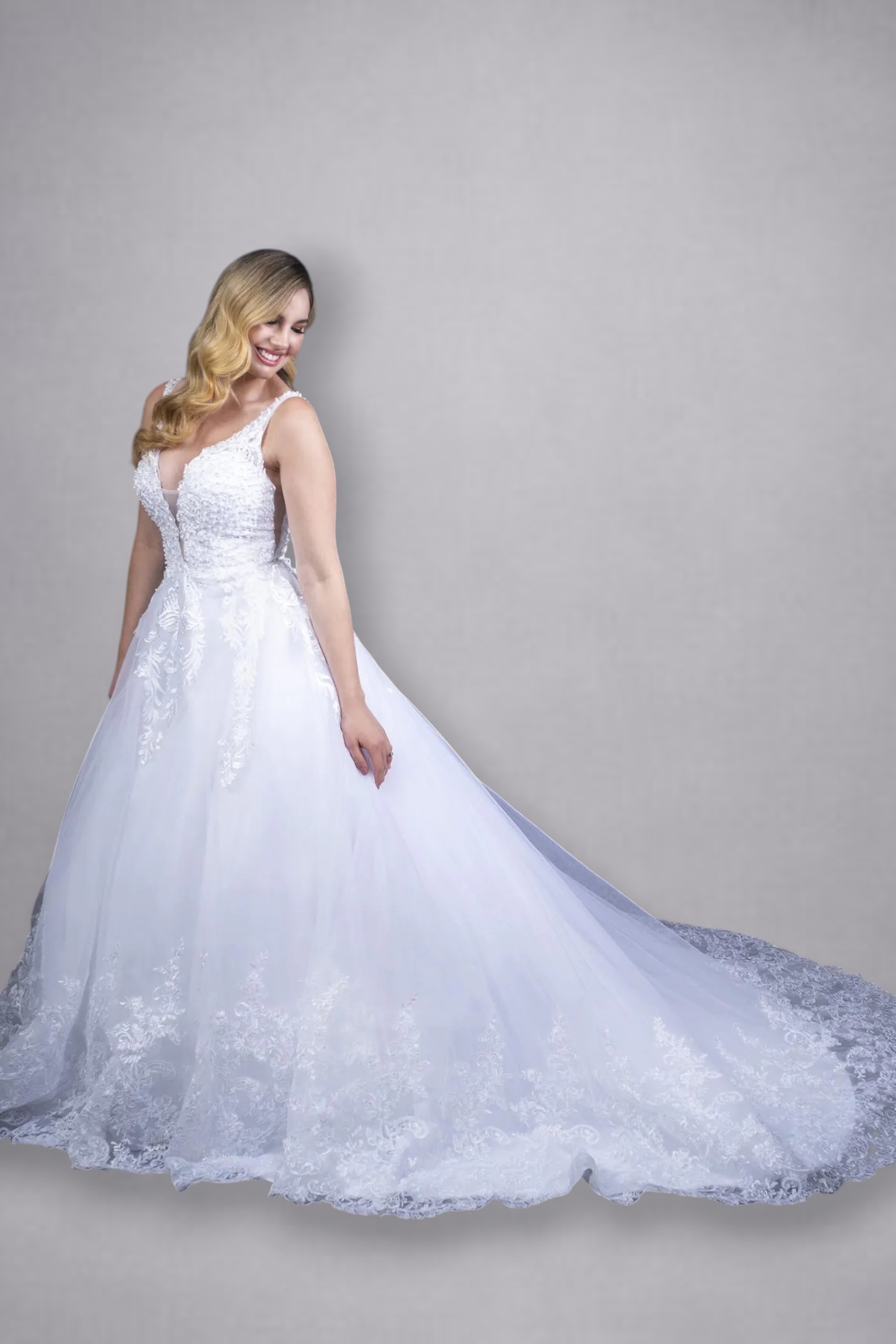 Vestidos de novia largo, con cuello de pico, sin mangas color ivory