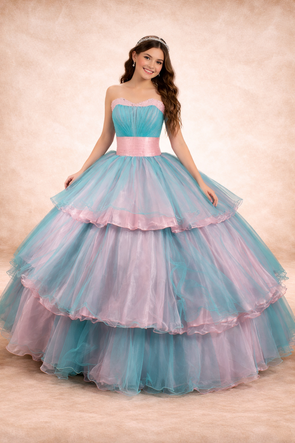 Vestido de xv años de tirantes en color azul , corset con bordado de sirena y adornos estilo princesa de la mejor calidad