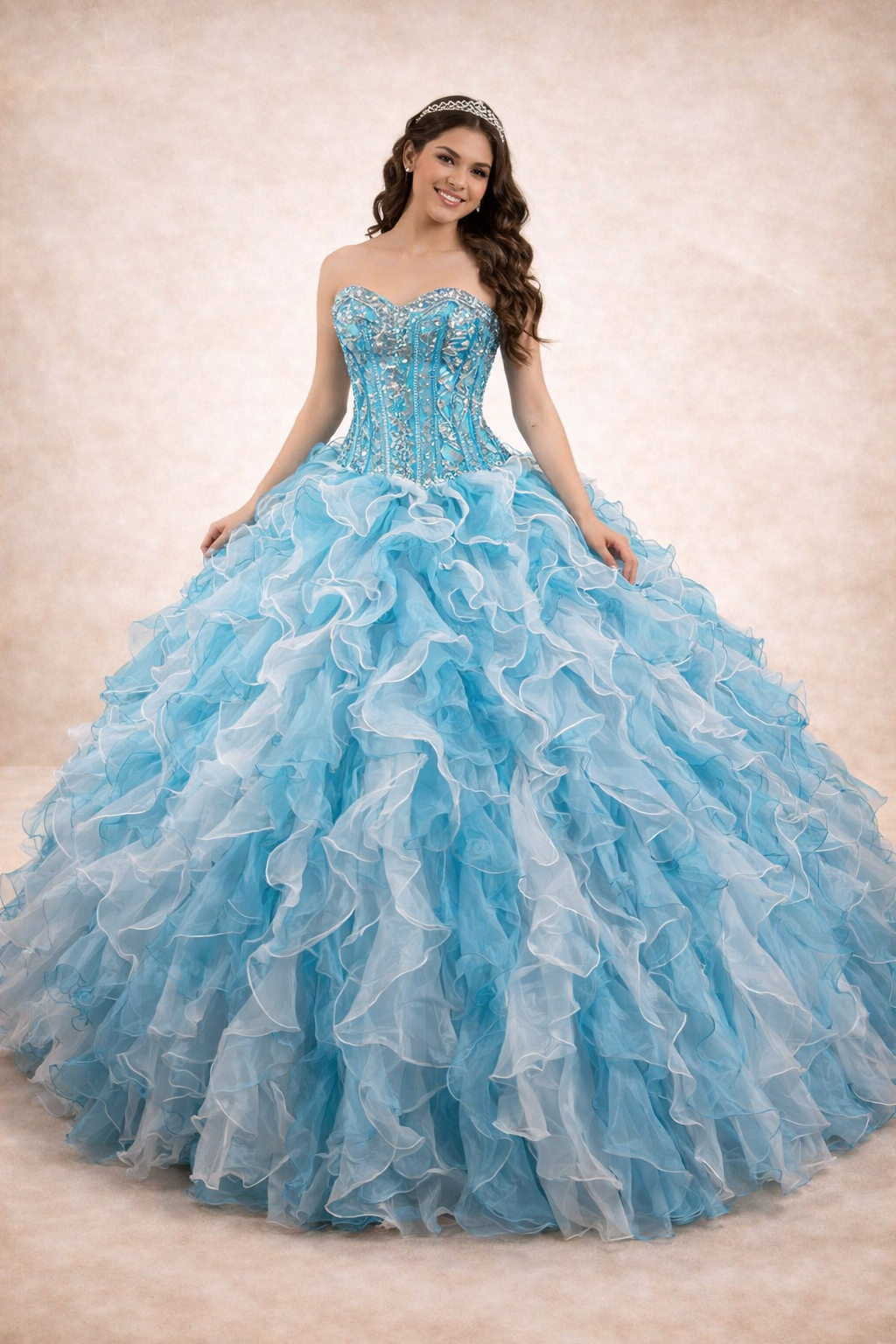 Vestido de xv años color azul zafiro de dos piezas off shoulder con aplicación y bordados al tono