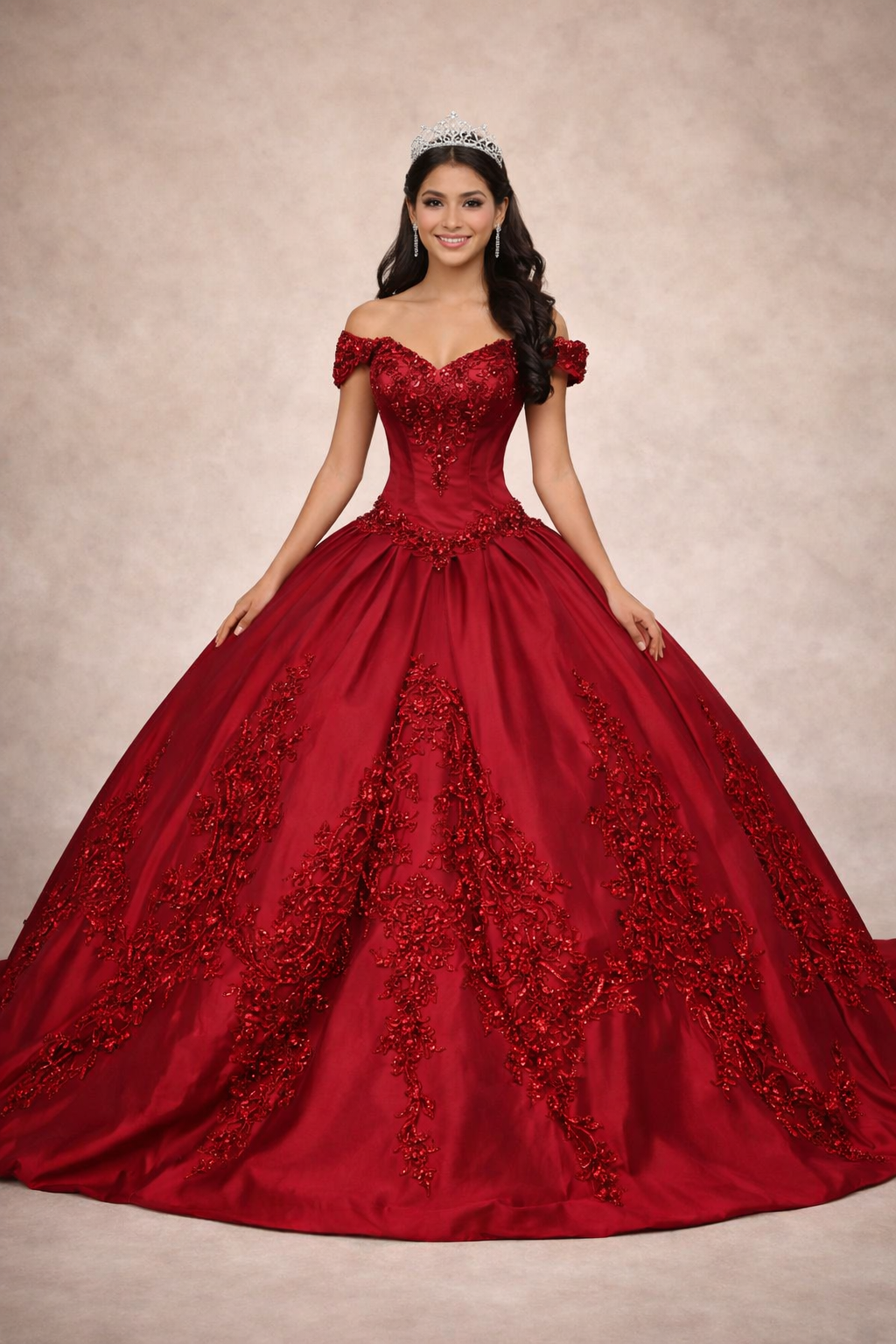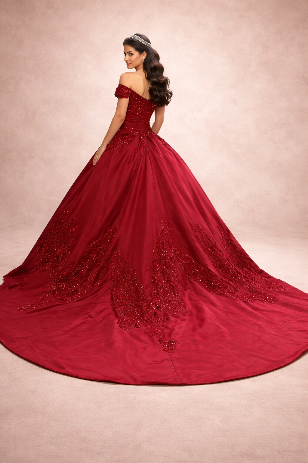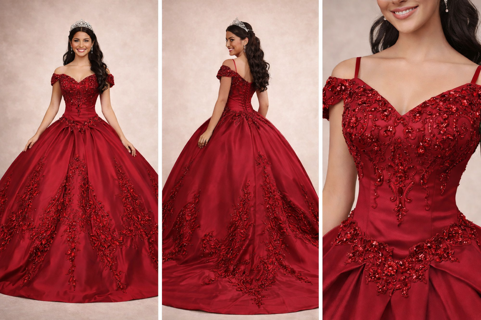 Vestidos de Quinceañera de satén hombros descubiertos, apliques de lentejuelas, vestido elegante