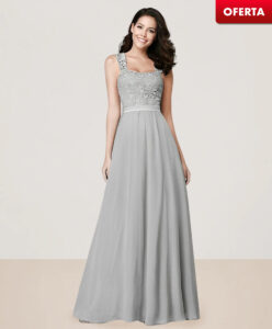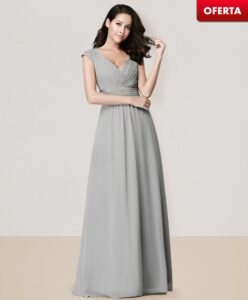 Vestido de dama de honor con cuello en V fruncido de gasa larga